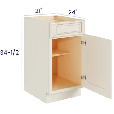 Ivory White - 21" Base Cabinet - 21"W x 34-1/2"H x 24"D - 1D, 1Drw, 1S