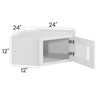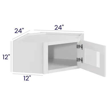 White Shaker - Wall Diagonal Glass Door Corner Cabinet - 24"W x 12"H x 12"D - 1D -2S