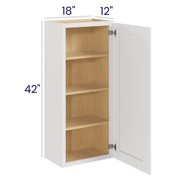 White Shaker - Wall Cabinet - 18"W x 42"H x 12"D - 1D -3S