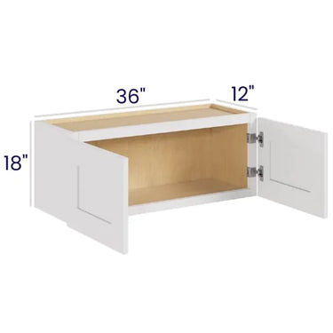 White Shaker - Wall Cabinet - 36"W x 18"H x 12"D - 2D