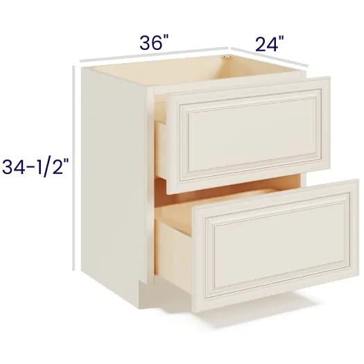 Ivory White - 36" 2-Drawer Base Cabinet - 36"W x 34-1/2"H x 24"D - 2DRW