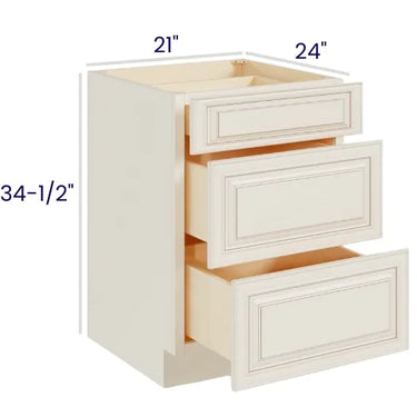 Ivory White - 21" 3-Drawer Base Cabinet - 21"W x 34-1/2"H x 24"D - 3DRW