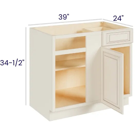 Ivory White - 42" Blind Base Corner Cabinet - 39"W x 34-1/2"H x 24"D -1D, 1Drw, 1S
