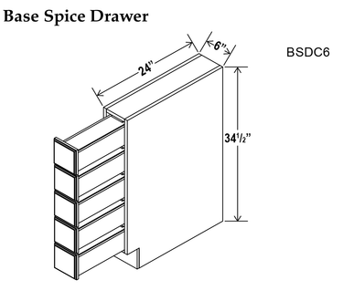 Ivory White - 6" Base Spice Drawer - 34 1/2"W x 24"H x 6"D - 5DRW