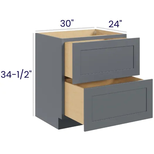 Gray Shaker - 30" 2-Drawer Base Cabinet - 30"W x 34-1/2"H x 24"D - 2D
