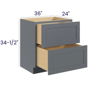 Gray Shaker - 36" 2-Drawer Base Cabinet - 36"W x 34-1/2"H x 24"D - 2D