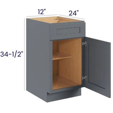 Gray Shaker - 12" Base Cabinet - 12"W x 34-1/2"H x 24"D - 1D, 1Drw, 1S