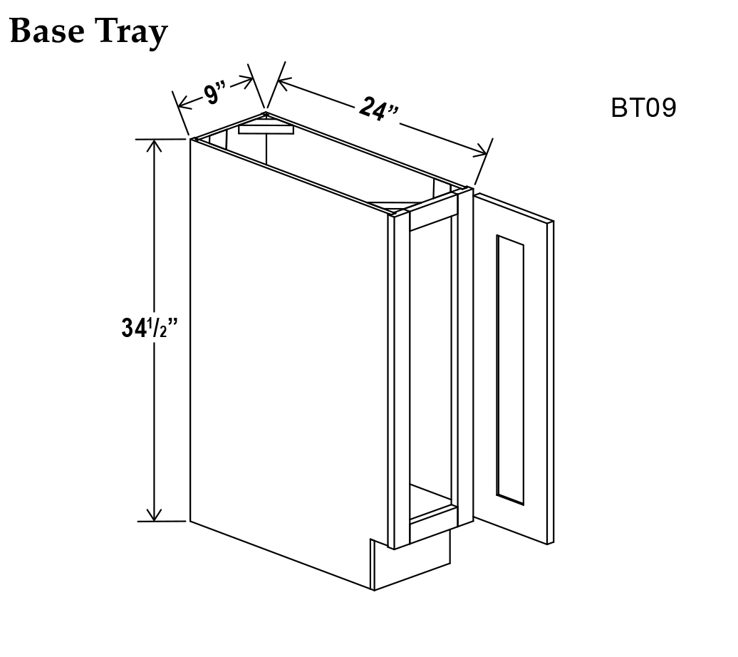 Gray Shaker - 9" Base Cabinet - 9"W x 34-1/2"H x 24"D - 1D