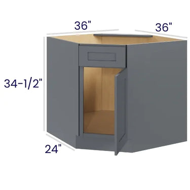 Gray Shaker - 36" Corner Sink Base - 36"W x 34-1/2"H x 24"D