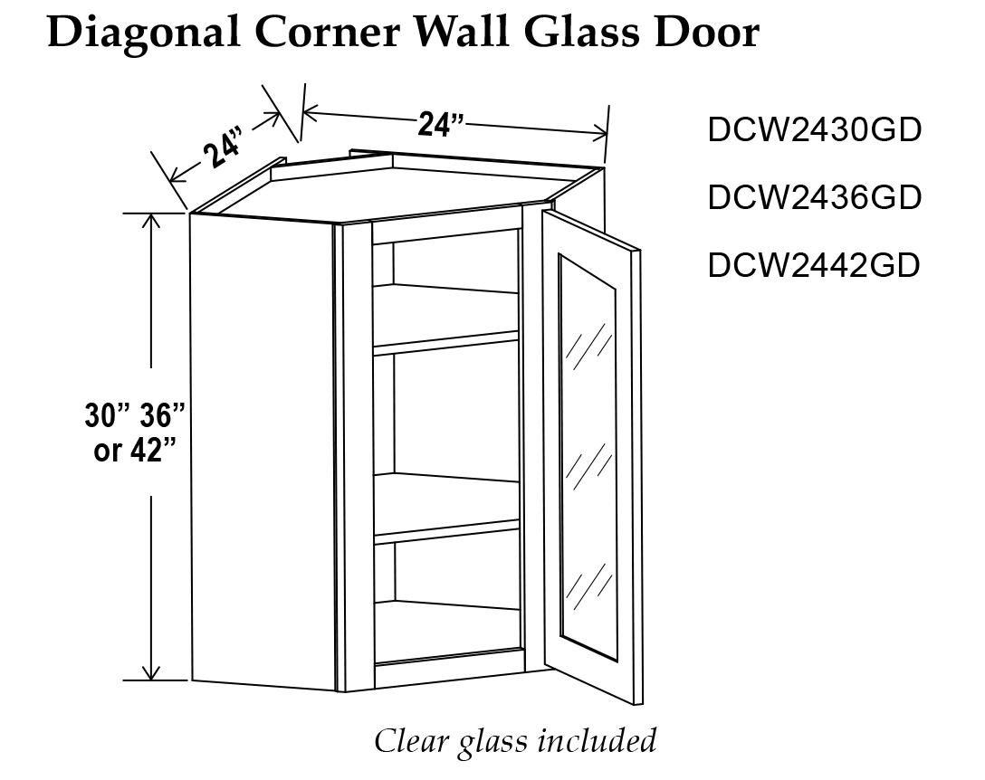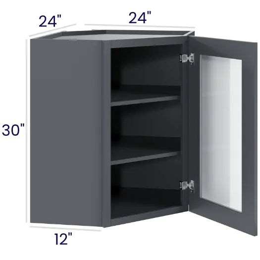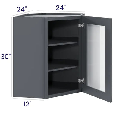 Gray Shaker - Wall Diagonal Glass Door Corner Cabinet - 24"W x 30"H x 12"D - 1D -2S