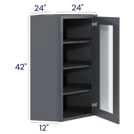 Gray Shaker - Wall Diagonal Glass Door Corner Cabinet - 24"W x 42"H x 12"D - 1D -3S