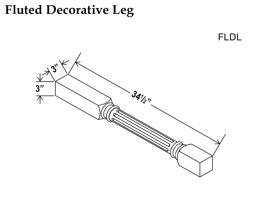 Gray Shaker - Fluted Decorative Leg - 3"W x 34 1/2"H x 3"D
