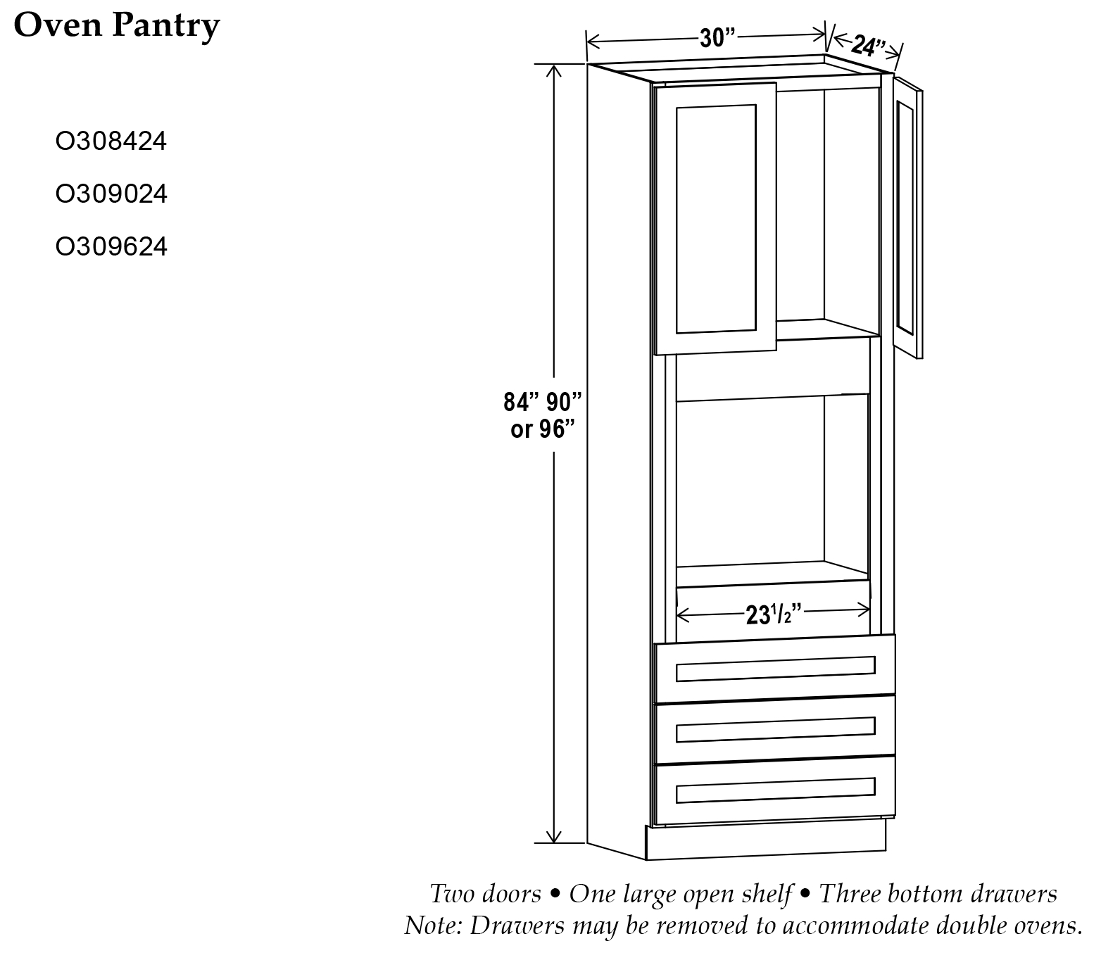 Gray Shaker - Oven Cabinet - 30"W x 96"H X 24"D - 2D, 3DRW, 1S