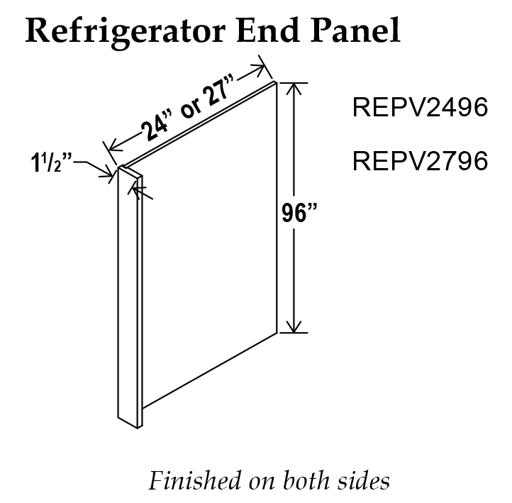Gray Shaker - Refrigerator End Panel Veneer - 24"W x 96"H x1 1/2"D