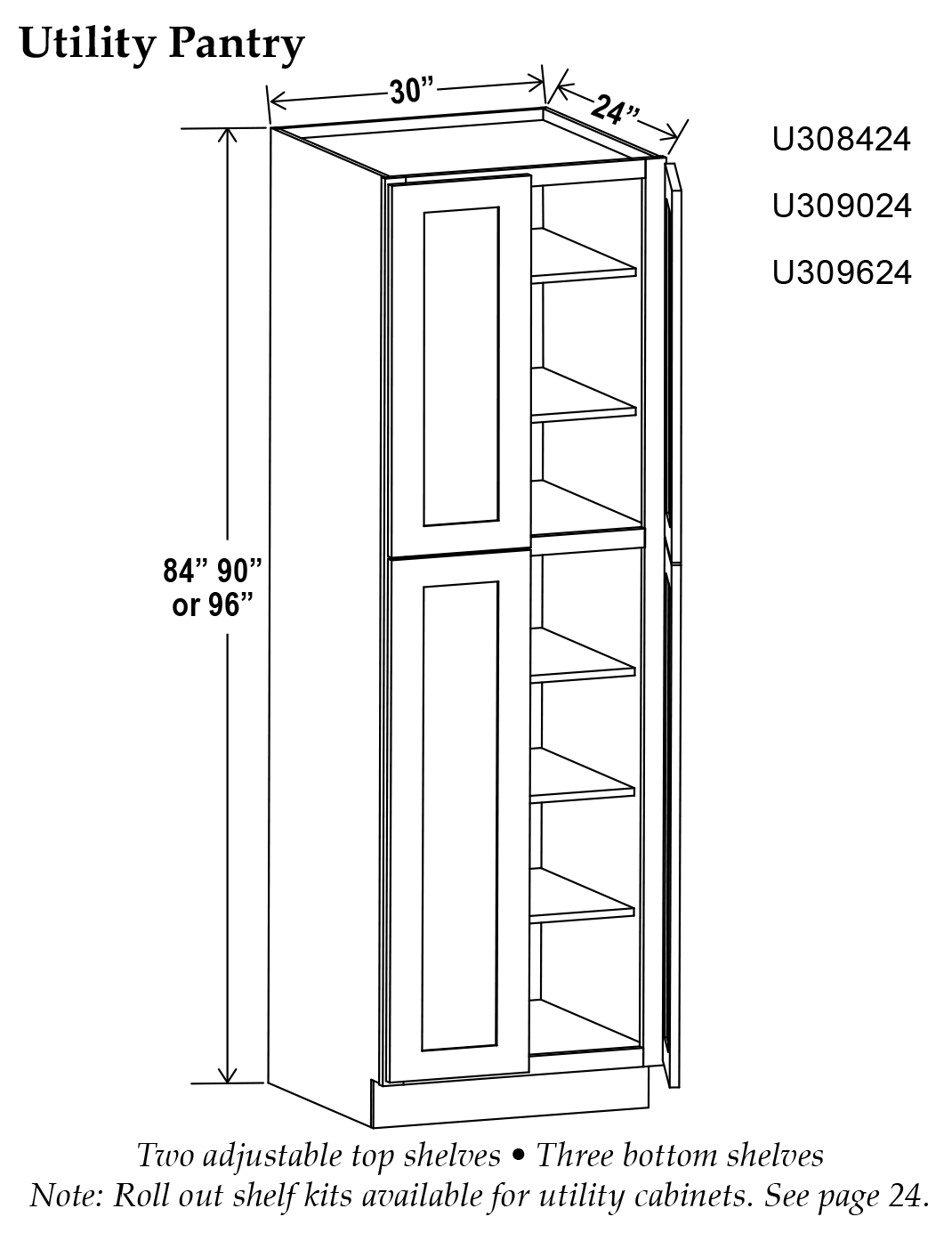 Gray Shaker - Wall Pantry - 30"W x 96"H x 24"D - 4D, 5S