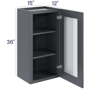 Gray Shaker - Wall Glass Door Cabinet - 15"W x 36"H x 12"D - 1D -2S