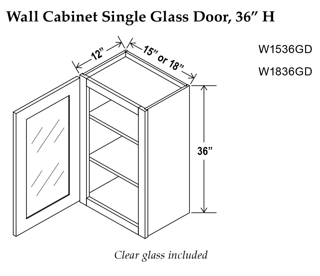 Gray Shaker - Wall Glass Door Cabinet - 18"W x 36"H x 12"D - 1D -2S