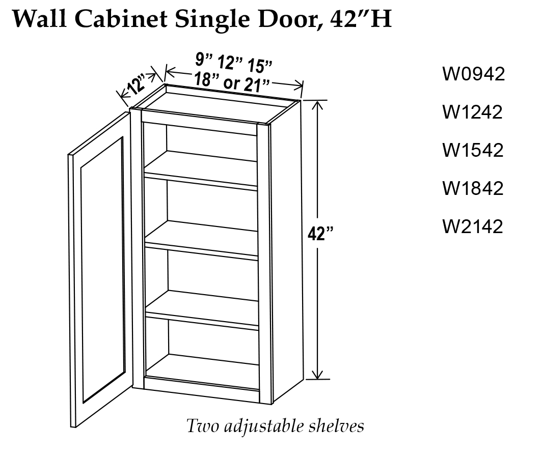 Gray Shaker - Wall Cabinet - 21"W x 42"H x 12"D - 1D -3S
