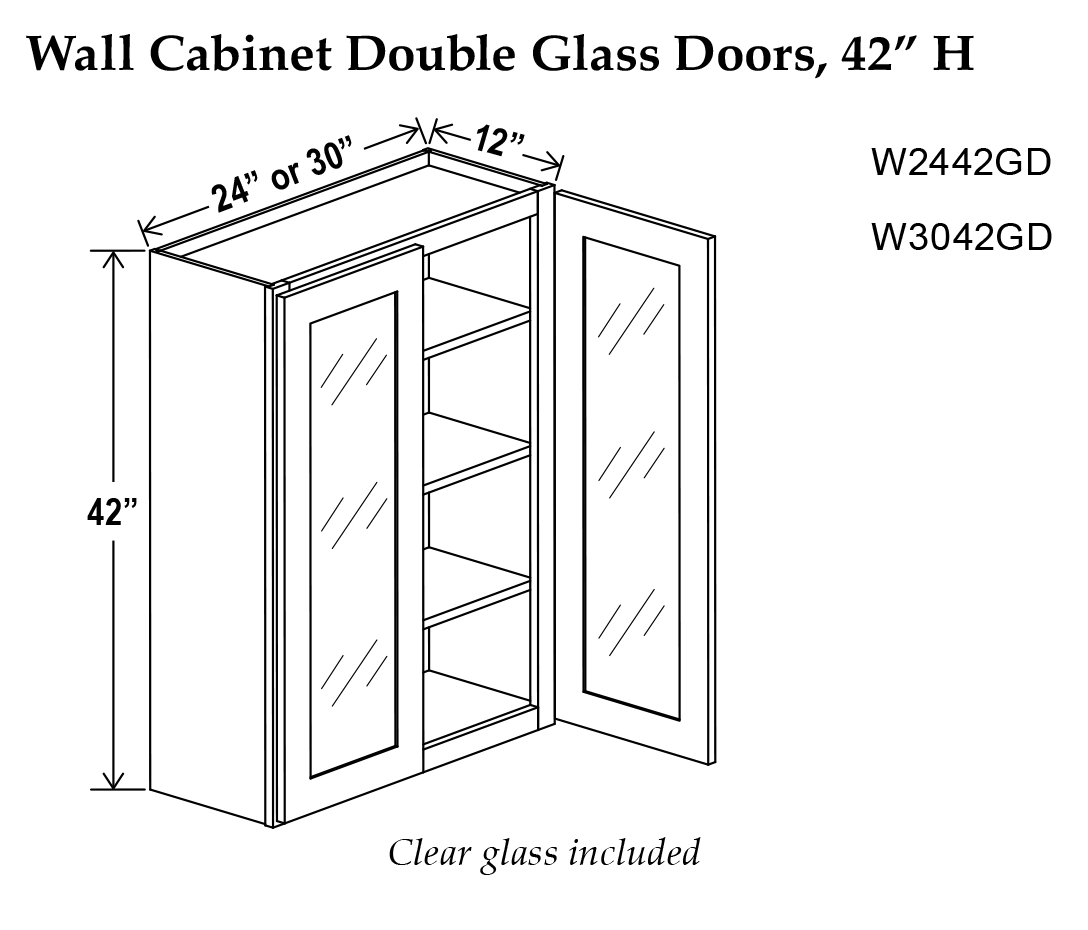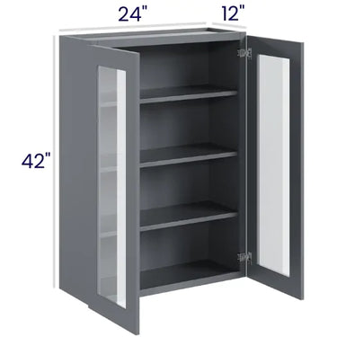 Gray Shaker - Wall Glass Door Cabinet - 24"W x 42"H x 12"D - 2D -3S
