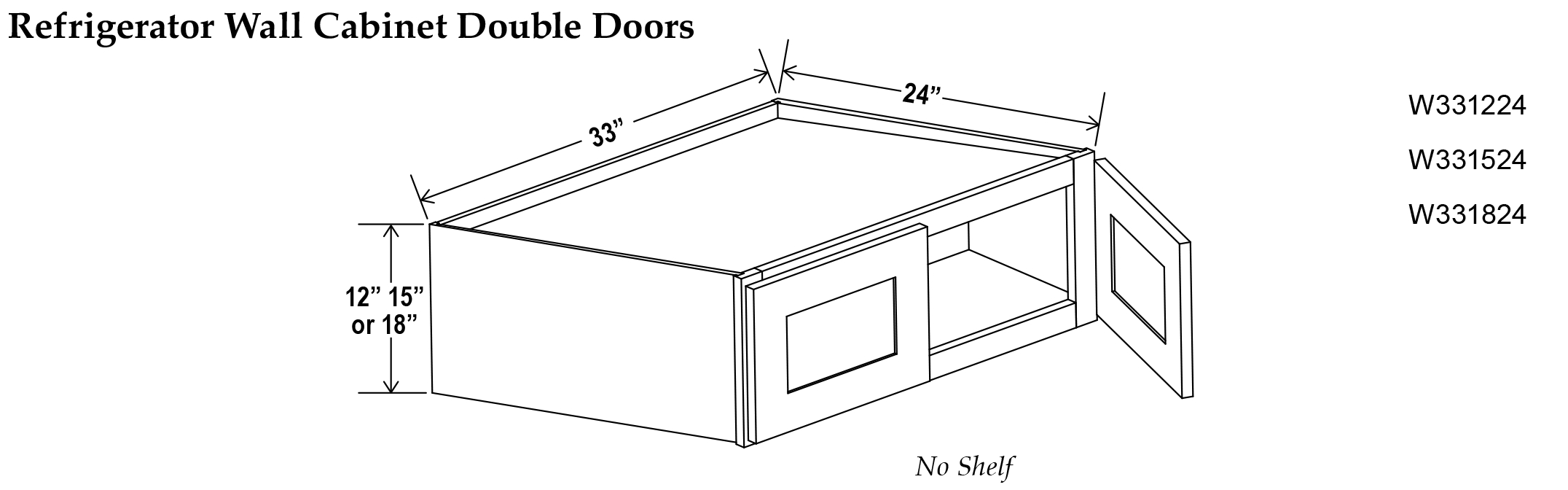 Gray Shaker - Wall Refrigerator Cabinet-33"W x 12"H x 24"D - 2D