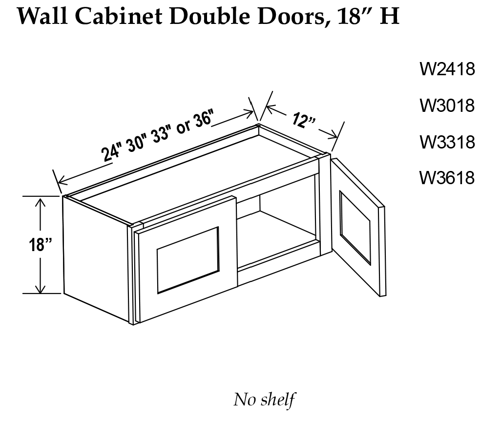 Gray Shaker - Wall Cabinet - 33"W x 18"H x 12"D - 2D