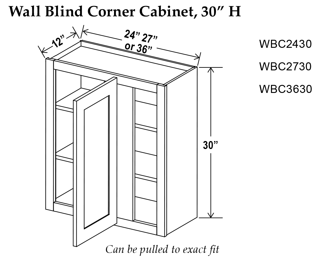 Gray Shaker - Wall Blind Corner Cabinet - 24"W x 30"H x 12"D - 1D -2S