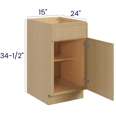 Slim White Oak - 15" Base Cabinet - 15"W x 34-1/2"H x 24"D - 1D, 1Drw, 1S
