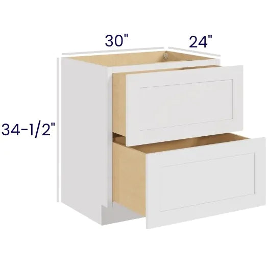 White Shaker - 30" 2-Drawer Base Cabinet - 30"W x 34-1/2"H x 24"D - 2DRW