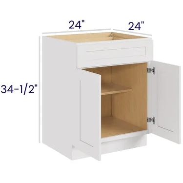 White Shaker - 24" Base Cabinet - 24"W x 34-1/2"H x 24"D - 2D, 1Drw, 1S