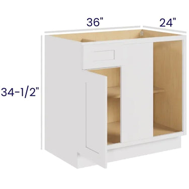 White Shaker - 39" Blind Base Corner Cabinet - 27"W x 34-1/2"H x 24"D -1D, 1Drw, 1S