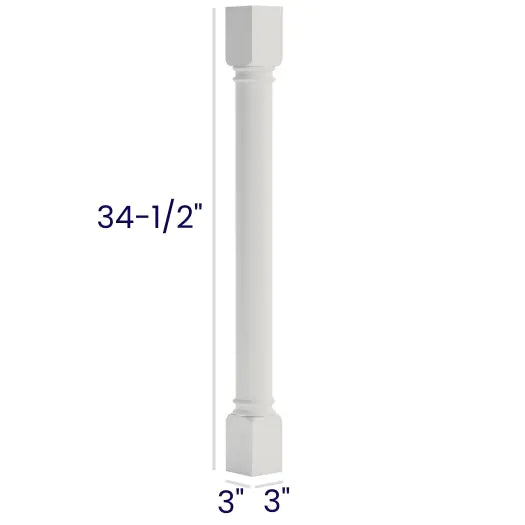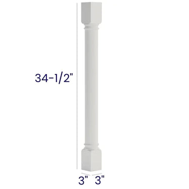 White Shaker - Classic Decorative Leg - 3"W x 34 1/2"H x 3"D