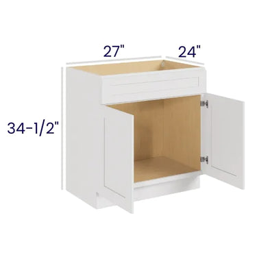 White Shaker - 27" Sink Base - 27"W x 34-1/2"H x 24"D - 1 False Drawer