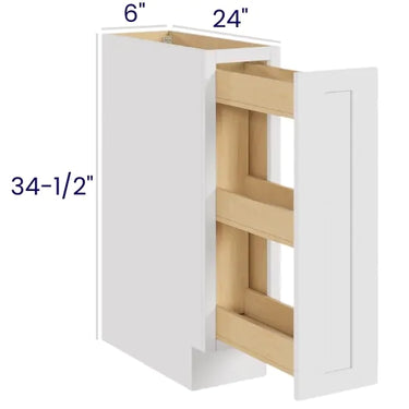 White Shaker - 6" Spice Pull Base Cabinet - 6"W x 34-1/2"H x 24"D