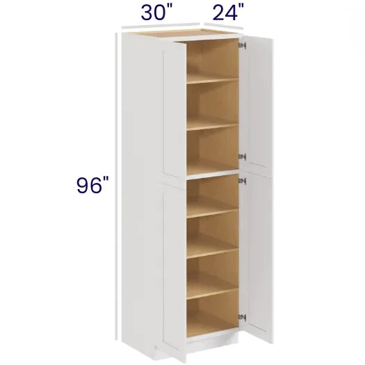White Shaker - Wall Pantry - 30"W x 96"H x 24"D - 4D, 5S