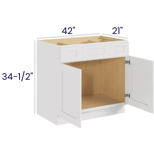 White Shaker - 42" Vanity Sink Drawer Base Cabinet - 42"W x 34 1/2"H x 21"D - 2 DRW, 2D