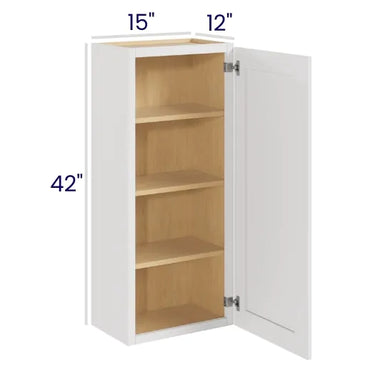 White Shaker - Wall Cabinet - 15"W x 42"H x 12"D - 1D - 3S
