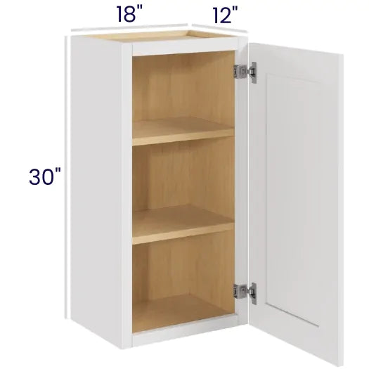 White Shaker - Wall Cabinet - 18"W x 30"H x 12"D - 1D - 2S
