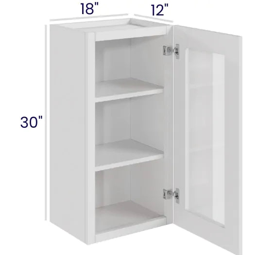 White Shaker - Wall Glass Door Cabinet - 18"W x 30"H x 12"D - 1D -2S