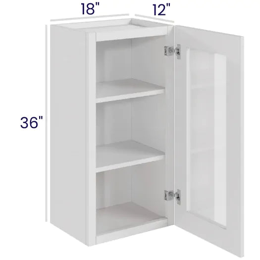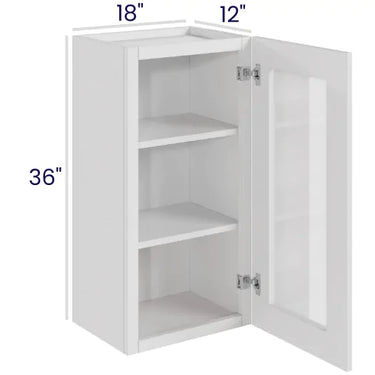 White Shaker - Wall Glass Door Cabinet - 18"W x 36"H x 12"D - 1D -2S
