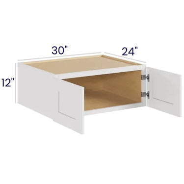 White Shaker - Wall Refrigerator Cabinet-30"W x 12"H x 24"D - 2D
