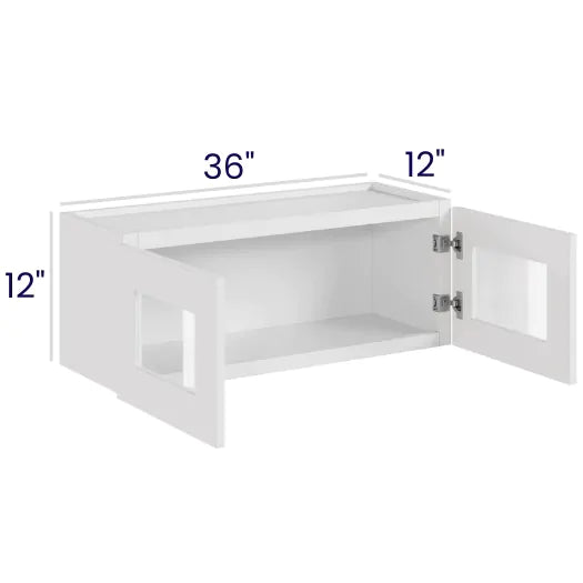 White Shaker - Wall Glass Door Cabinet - 36"W x 12"H x 12"D - 2D