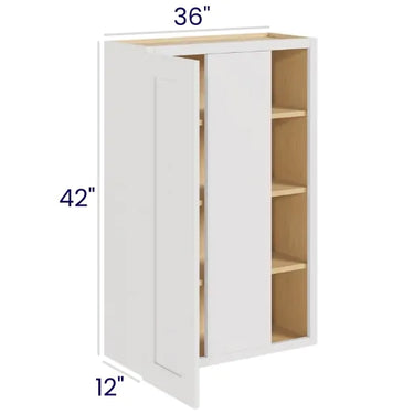 White Shaker - Wall Blind Corner Cabinet - 36"W x 42"H x 12"D - 1D -2S
