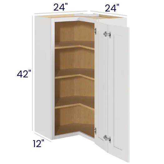White Shaker - Wall Easy Reach Corner Cabinet - 24"W x 42"H x 12"D