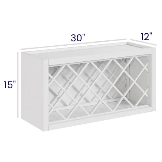 White Shaker - Wall Wine Rack Cabinet - 30"W x 15"H x 12"D