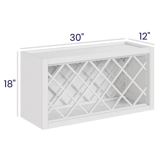 White Shaker - Wall Wine Rack Cabinet - 30"W x 18"H x 12"D